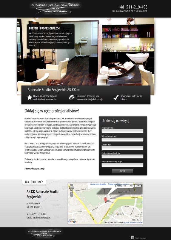 Zaprojektowanie strony landing page dla Autorskiego Studia Fryzjerskiego AK.KK Anna Kochana.