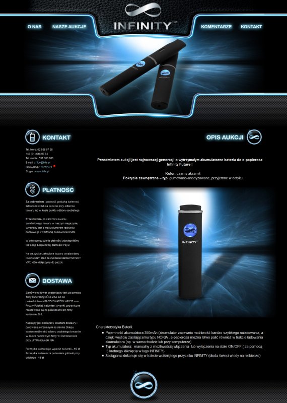 Wykonanie szablonu aukcji Allegro oraz eBay, promującego najnowszego e-papierosa Infinity Future.