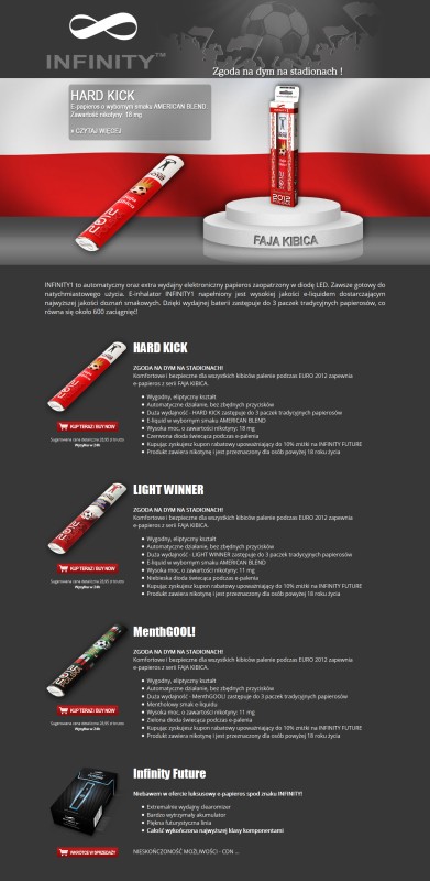 Wykonanie strony internetowej typu landing page, promującego e-papierosa INFINITY1 - Faja Kibica na Mistrzostwa Europy 2012.