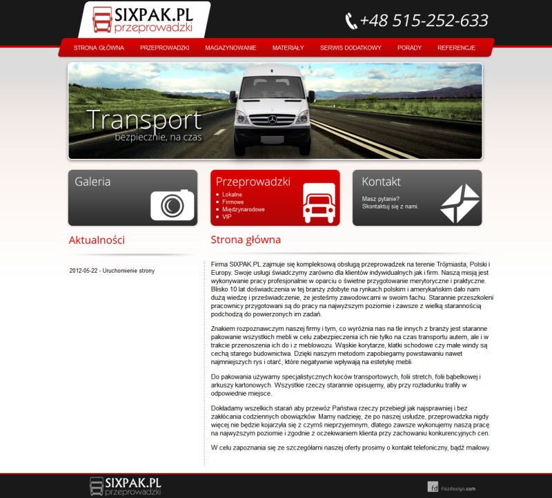 Wykonanie projektu graficznego oraz strony internetowej dla firmy transportowej SIXPAK, w oparciu o autorski system CMS.